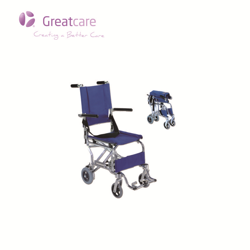 | GCW1807LABP | Mini opvouwbaar draagbaar aluminium stoelframe, opklapbare rugleuning, opklapbare voetplaat, massief zwenkwiel, pedaalvast PU mag achterwiel met zitting met veiligheidsgordel, kuitband. |