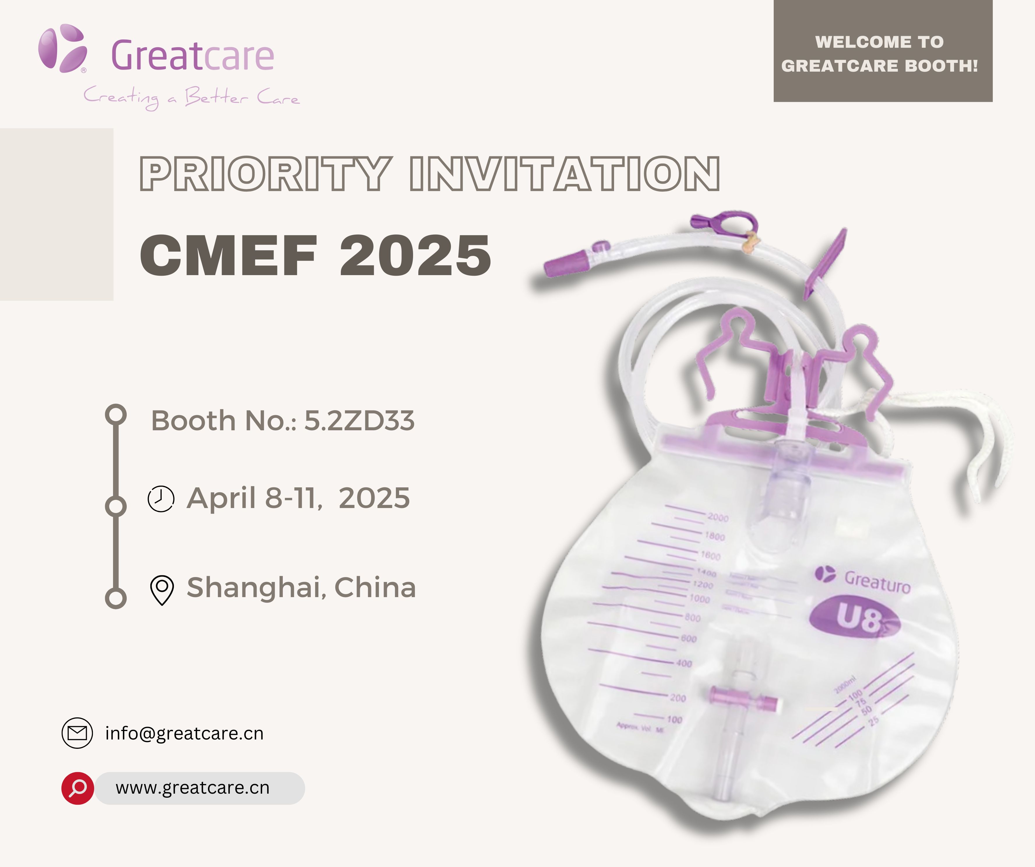 GreatCare is verheugd om zijn deelname aan CMEF 2025 aan te kondigen. Tijdens de vierdaagse tentoonstelling trok Greatcare's Booth (Booth No.: [5.2ZD33]) bezoekers uit Azië, Europa, het Midden-Oosten, Amerika en andere regio's. Het bedrijf toonde zijn zelfgeprezen scala aan urinzakken, drainagebakken, elastische riemen, gezichtsmaskers en andere medische verbruiksartikelen. Veel van deze producten zijn gecertificeerd met CE, ISO 13485, FDA, en worden veel gebruikt in ziekenhuizen, verpleeginstellingen en instellingen voor thuiszorg.
